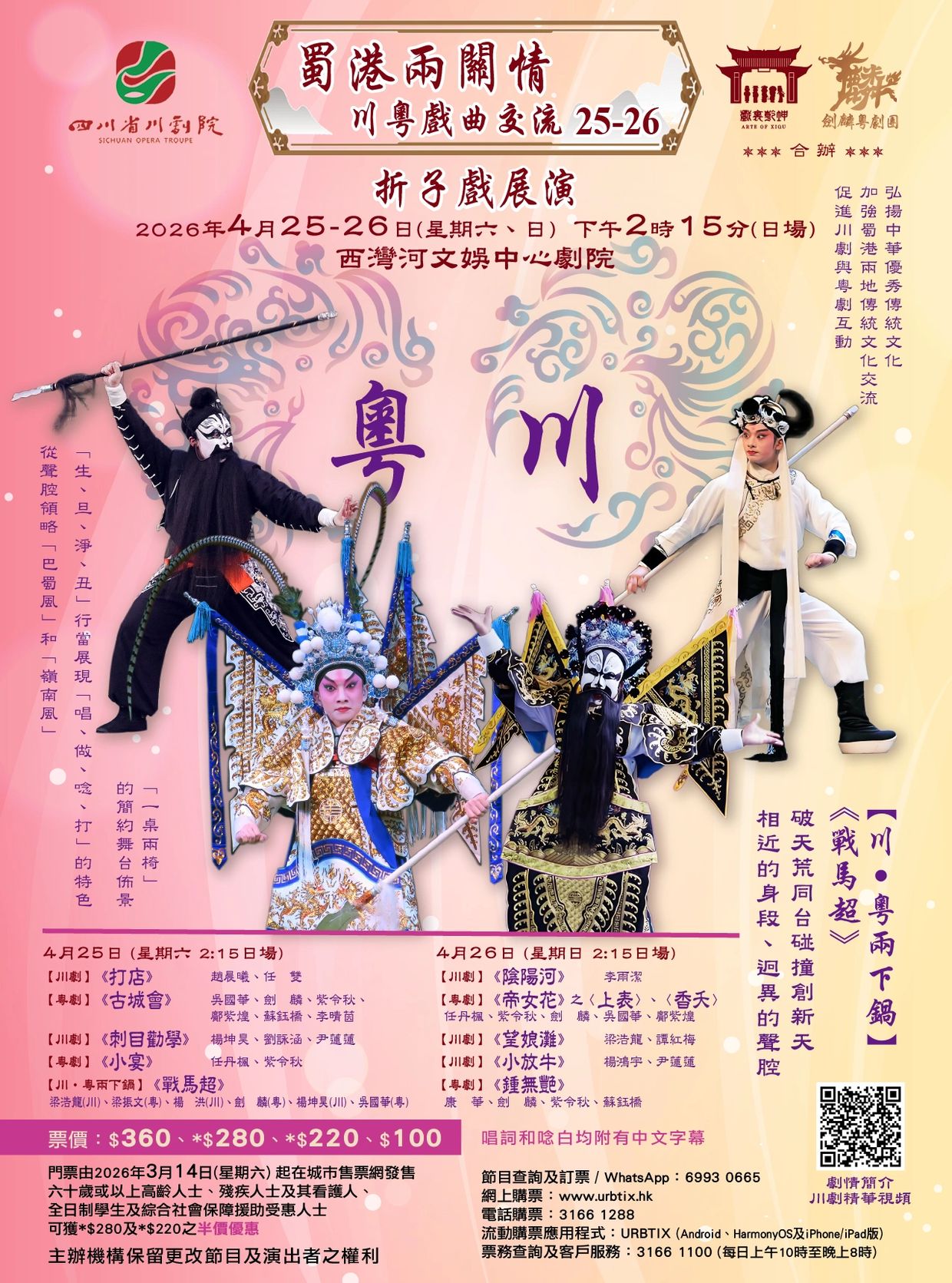 四川省川劇院與劍麟粵劇團、戲裏乾坤攜手合作,展示中華優秀傳統文化魅力:- 弘揚中華優秀傳統文化、加強蜀港兩地傳統文化交流、促進川劇與粵劇互動;-「一桌兩椅」的簡約舞台佈景、「生、旦、淨、丑」行當展現「唱、做、唸、打」的特色、從聲腔領略「巴蜀風」和「嶺南風」。